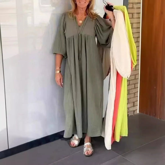 Bubble & 3/4 Sleeve V-Neck Maxi Dress