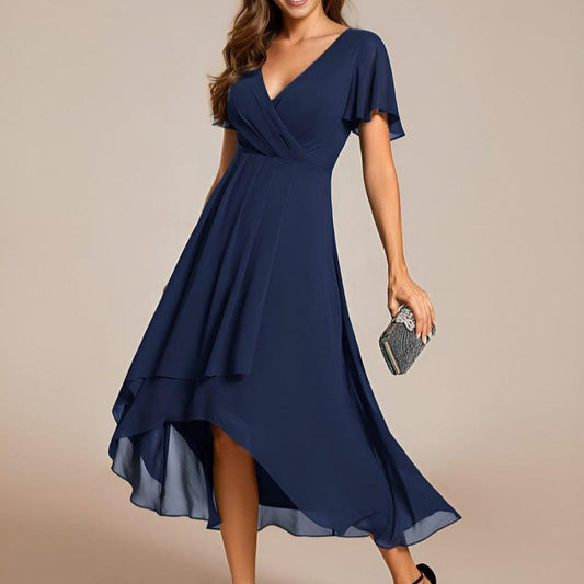 💗Summer Specials💗Women's Elegant V-Neck Ruffled Short Sleeve Dress