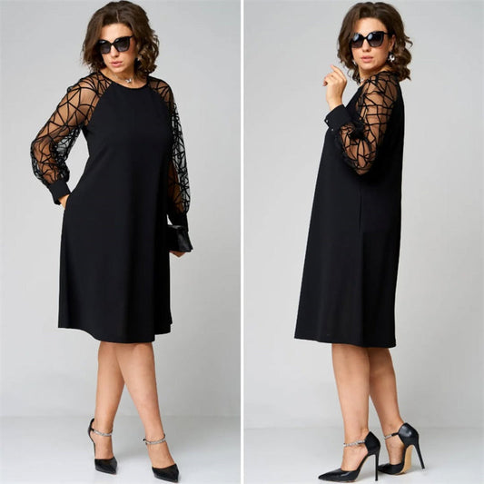 Loose Fit Black Tunic Dress with Mesh Sleeves