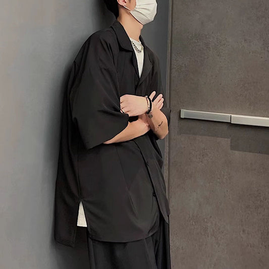 Men's Solid Long Sleeve T-Shirt with Lapel
