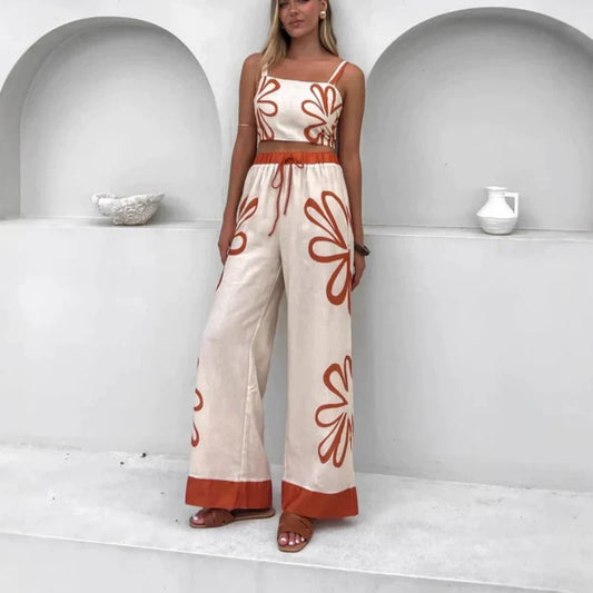 Printed Sleeveless Top & Wide-Leg Pants Set