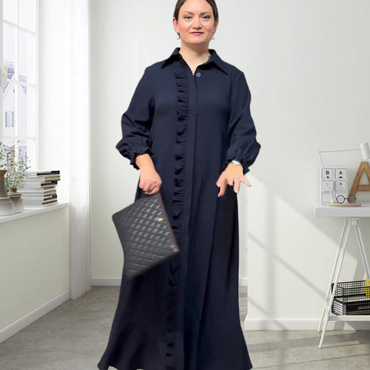 Women's Elegant Long Sleeve Ruffle Trim Maxi Dress