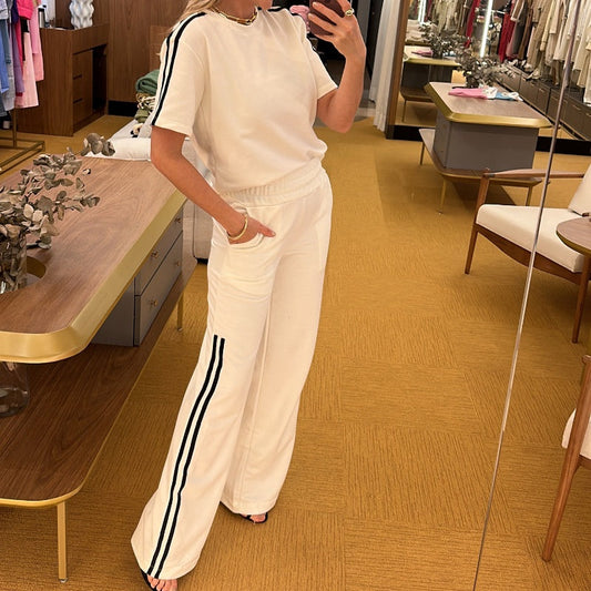 Side Stripes Top Wide Leg Pants 2-Piece Set
