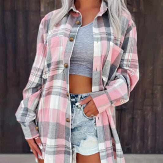Women's Loose Plaid Long Sleeve Shirt