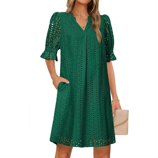 Women's V-Neck Hollow Out Short Sleeve Dress