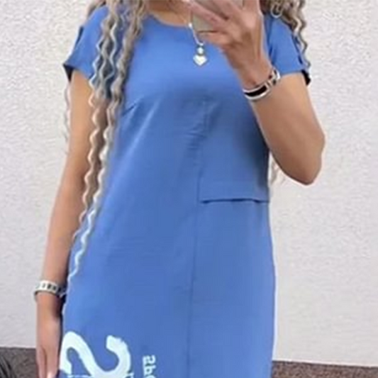 Women's Casual Short Sleeve Side Slit Loose Fit Dress
