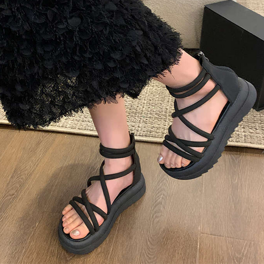 Women's Thick Sole Slip-Resistant Sandals with Crisscross Straps and Back Zipper