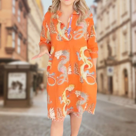 🎁Hot Sale 66% OFF⏳Women’s Casual Elegant Dragon Shirt-collar Dress