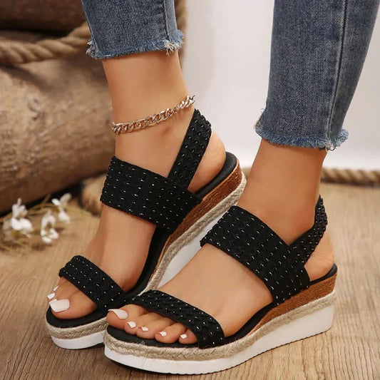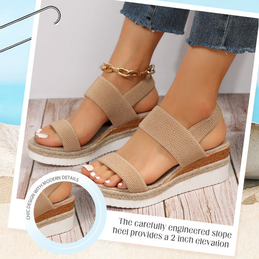 Women's Woven Elastic Strap Thick Bottom Slope Heel Sandals