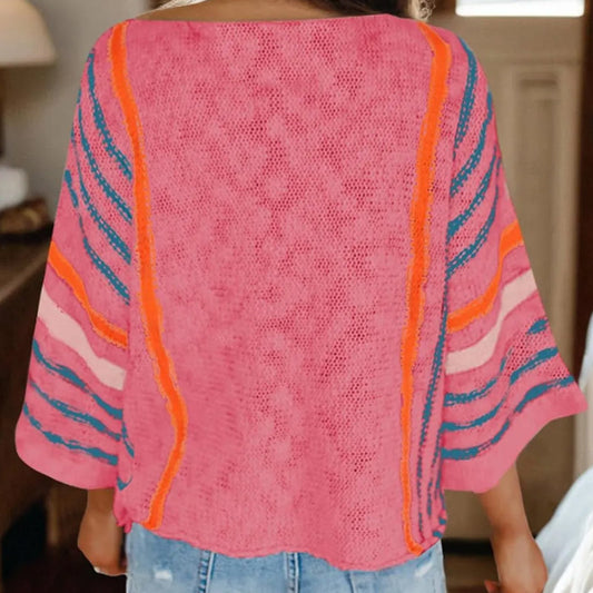 Women's Fashion Vertical Stripe Color Blocking Flared Sleeve Pullover Knit Sweater