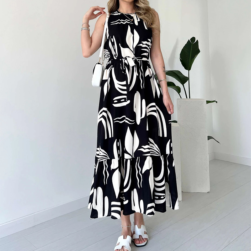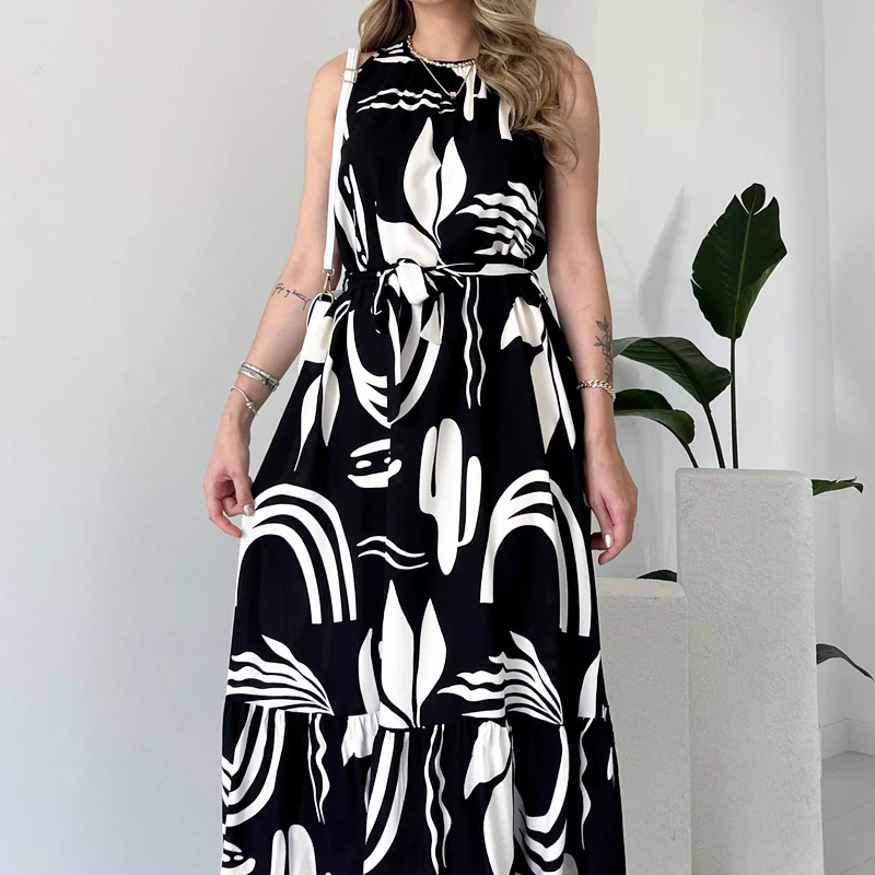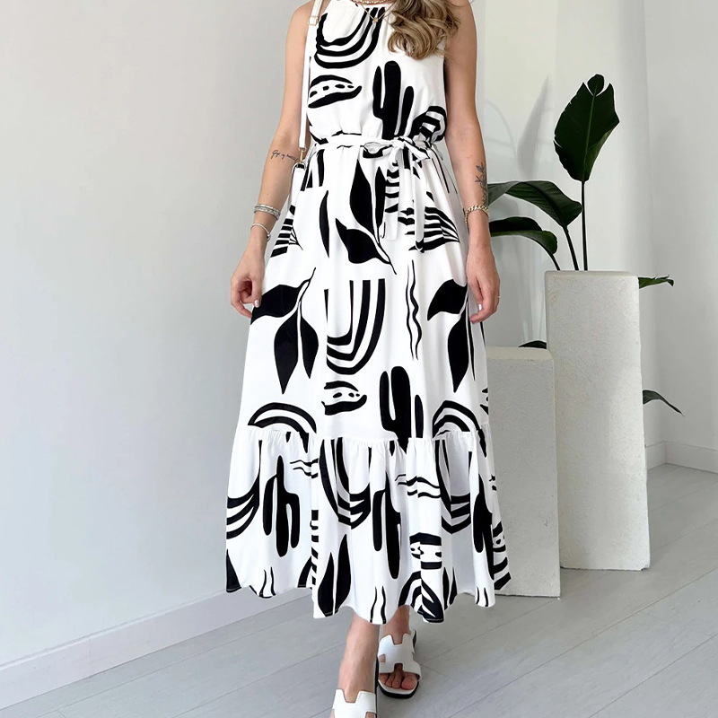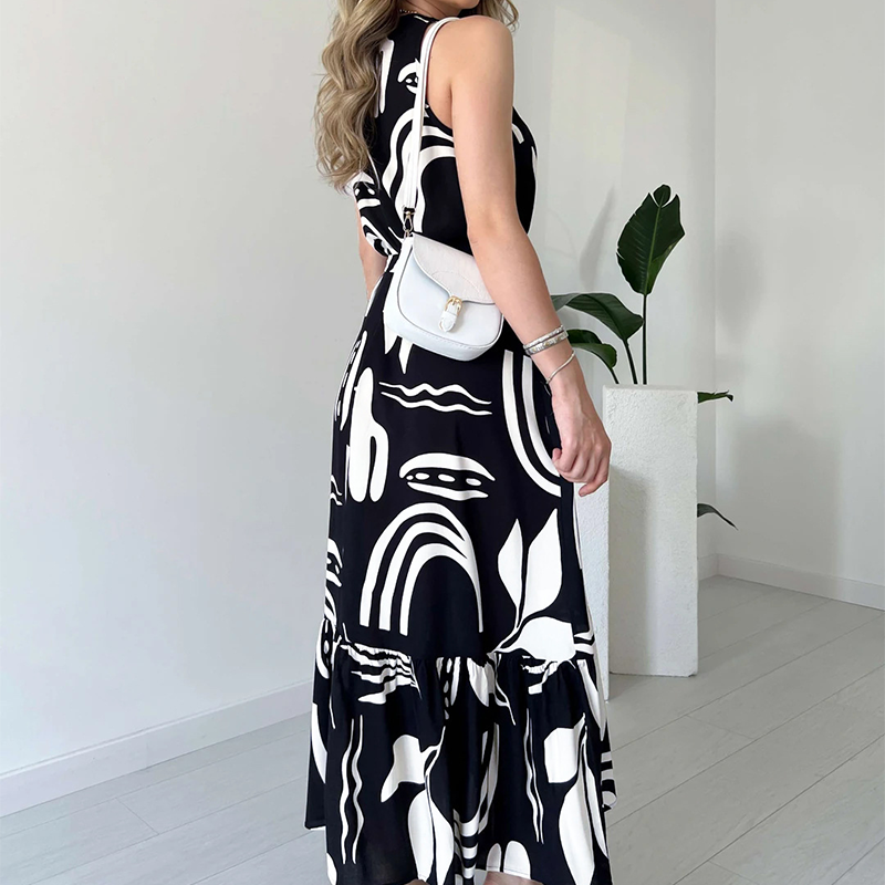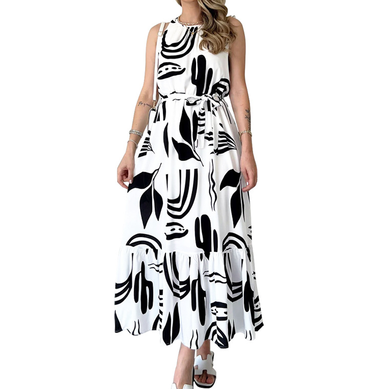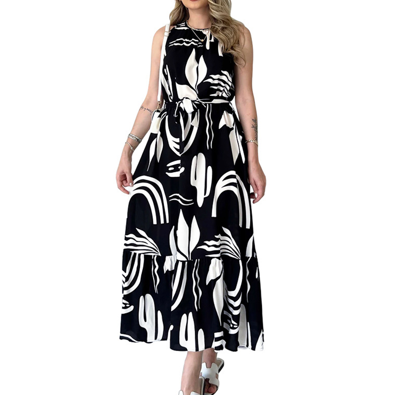 Package Includes: 1*Women’s Sleeveless Black and White Maxi Dress