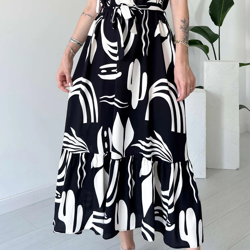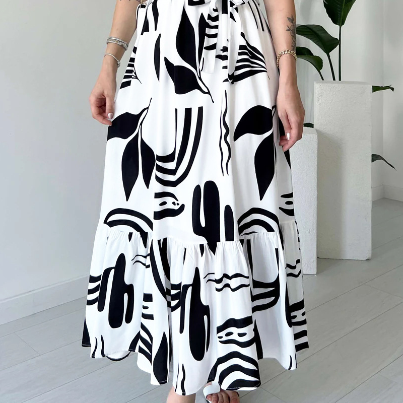 BLACK AND WHITE PRINT – The monochrome pattern delivers a clean, minimalist look that never goes out of style. Its classic black and white colors make styling effortless and versatile, allowing you to pair the dress easily with a variety of accessories for a refined and elegant finish.