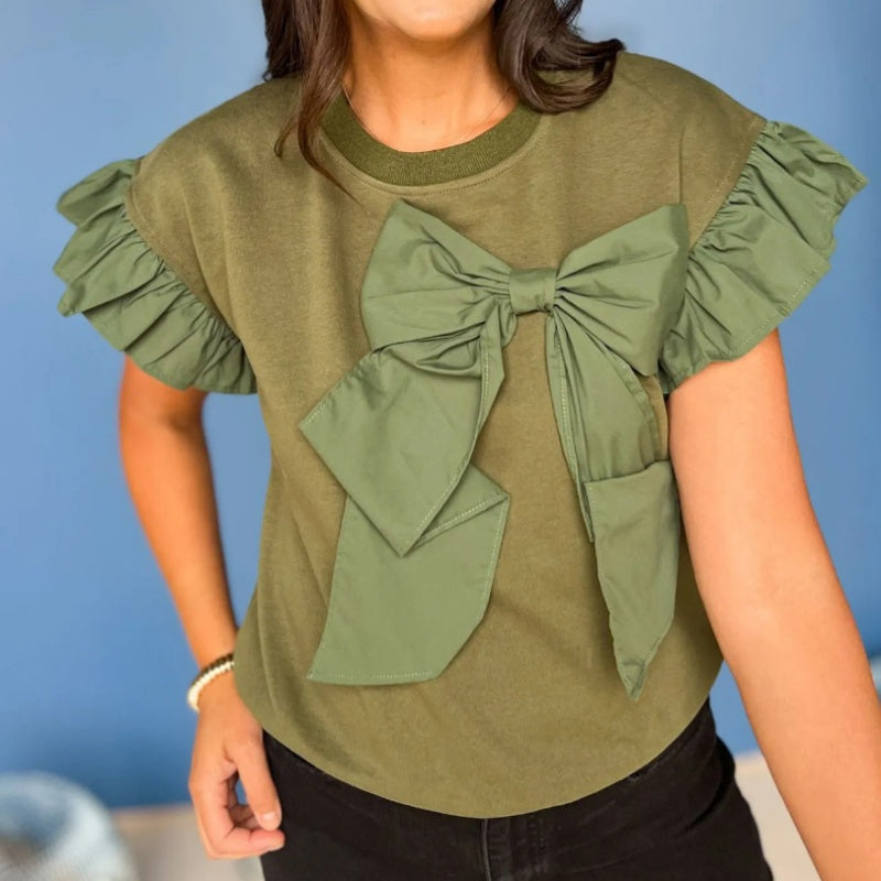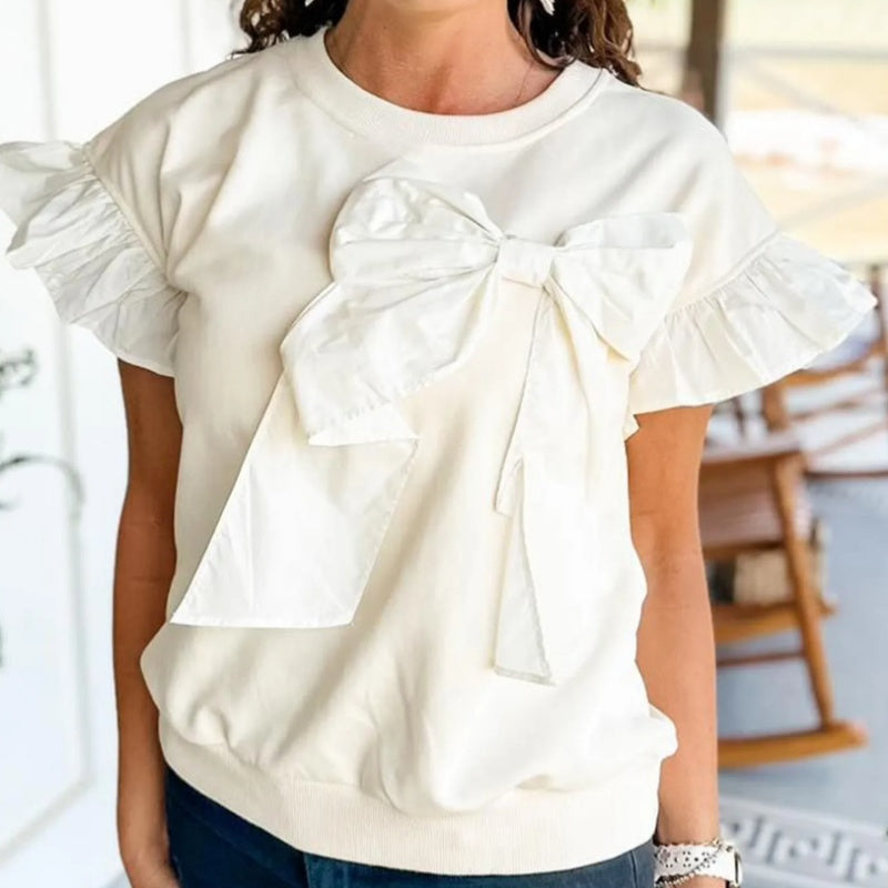 🌷Limited Time 50% OFF💞Bow Tie Short Ruffle Sleeve Top