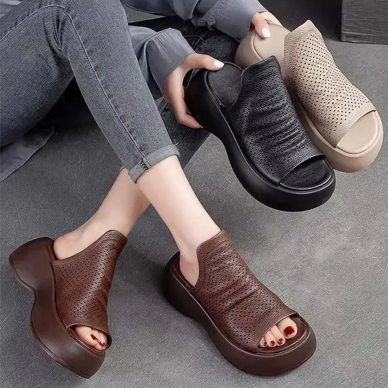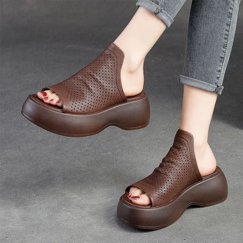 Women's Breathable Hollow-Out Leather Slippers - a perfect blend of style, comfort, and functionality.