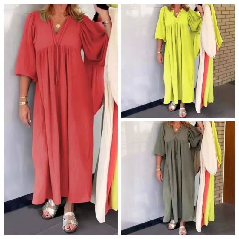 Package Includes: 1×Bubble & 3/4 Sleeve V-Neck Maxi Dress