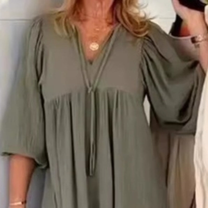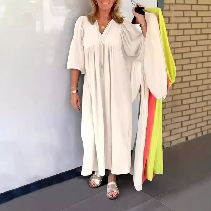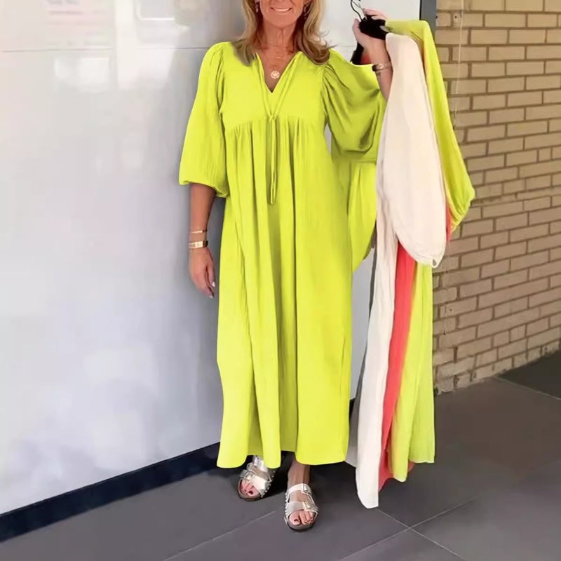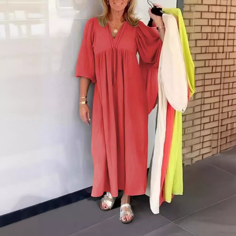 Bubble & 3/4 Sleeve V-Neck Maxi Dress