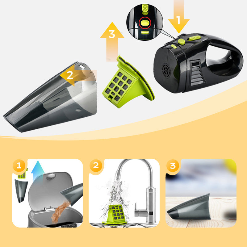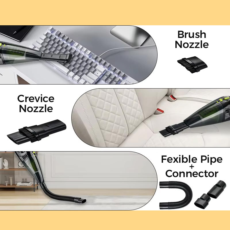WIRELESS AND PORTABLE DESIGN: Lightweight and cordless, this vacuum cleaner offers hassle-free cleaning without tangled wires. It’s small, easy to carry, and perfect for use both in the car and at home. A wired version is also available for those who prefer continuous power.