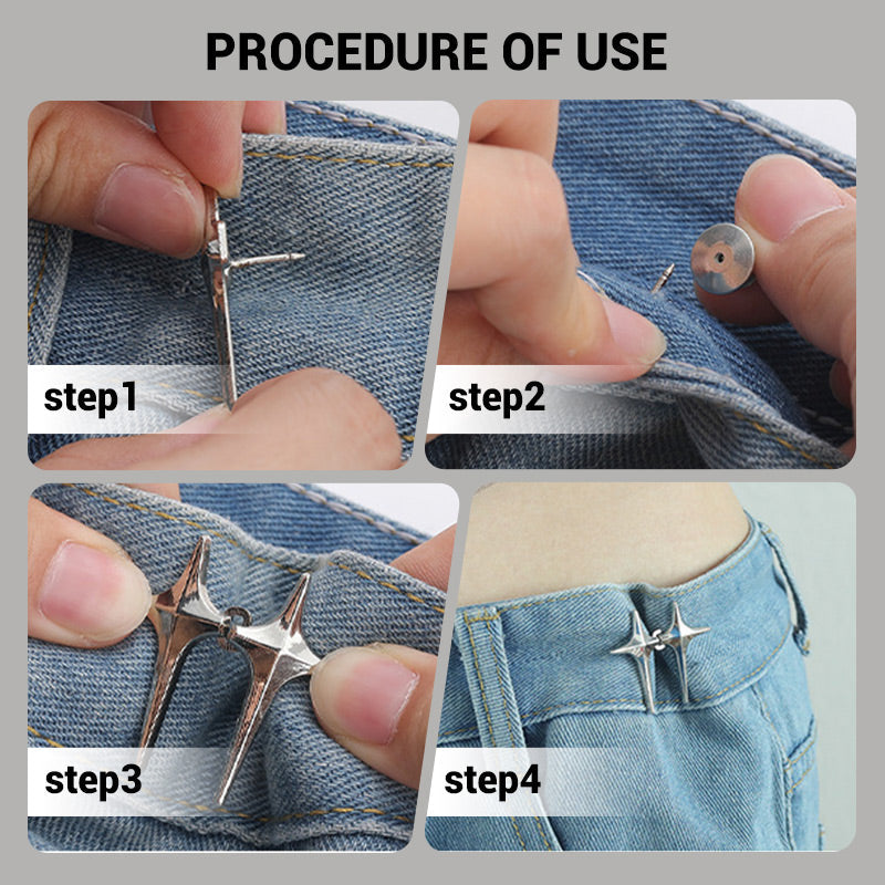 STYLISH FOUR-POINT STAR DESIGN: The sleek, four-point star design adds a touch of modern elegance to your outfit. Available in black and silver, these tighteners blend seamlessly with any wardrobe, combining functionality with fashion.