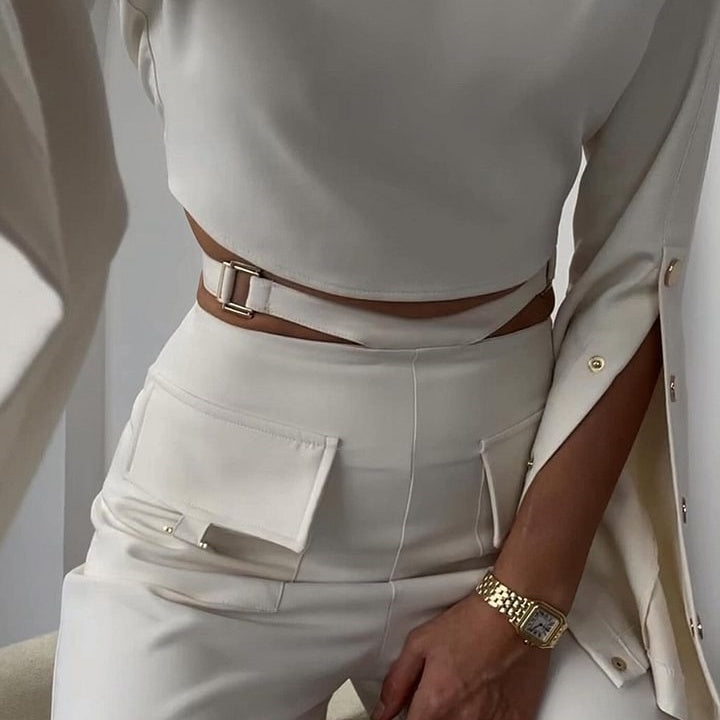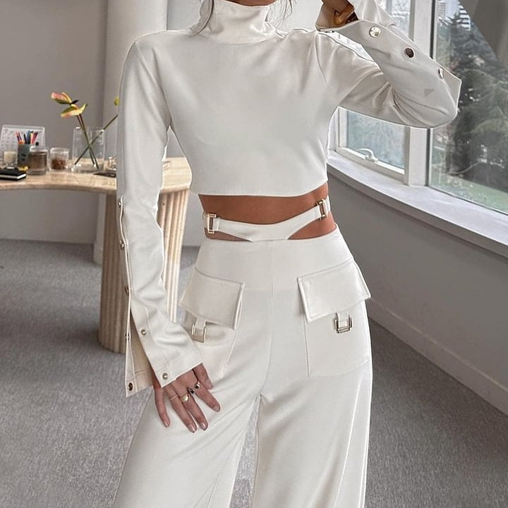 Package Include: 1* Crop Top and High-Waisted Pants 2-Piece Set