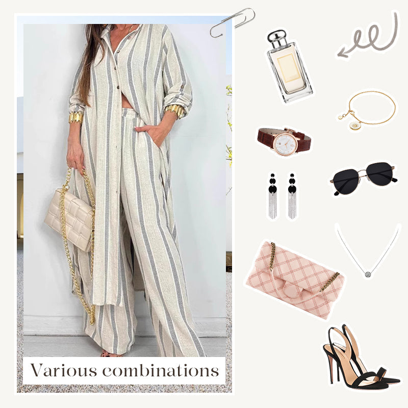 Package Includes: 1× Women's Striped Elegant V Neck 2 Piece Outfits