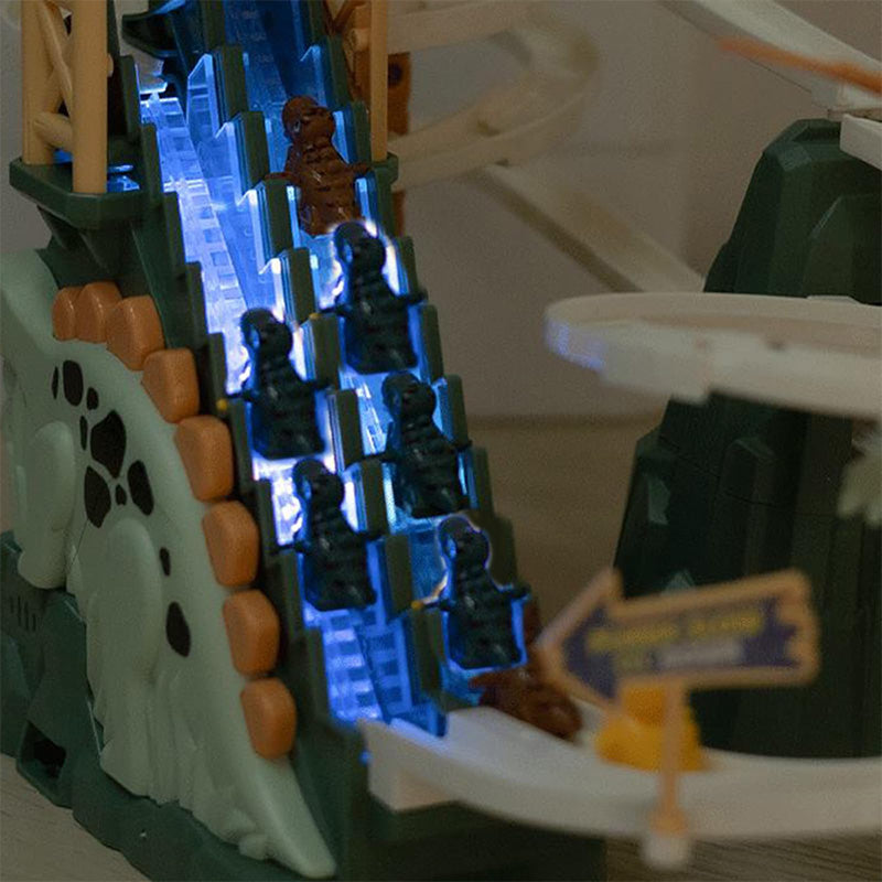 [Perfect Gift]Electric Dual Track Dinosaur Slide - Interactive Fun with Track Changes and Lights