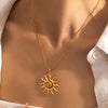 ELEGANT OPENWORK SUN DESIGN - Featuring a radiant openwork sun pendant, this necklace symbolizes warmth and energy, offering a refined, artistic touch to your outfit. A perfect blend of beauty, meaning, and everyday style.