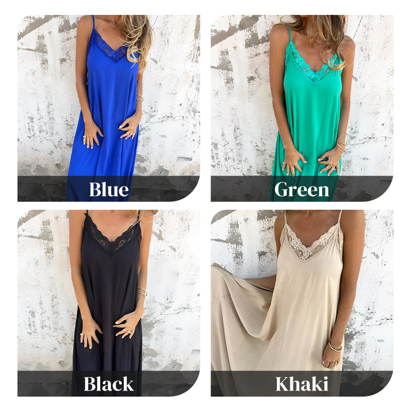 🎉Summer Hot Sale 49% OFF💃Women's Elegant Lace-Trim V-Neck Spaghetti Strap Maxi Dress