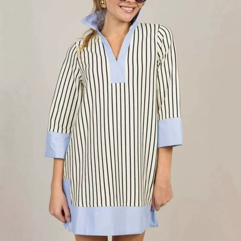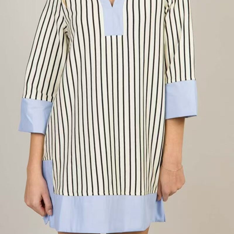Women's Elegant V-Neck Loose Patchwork Dresses