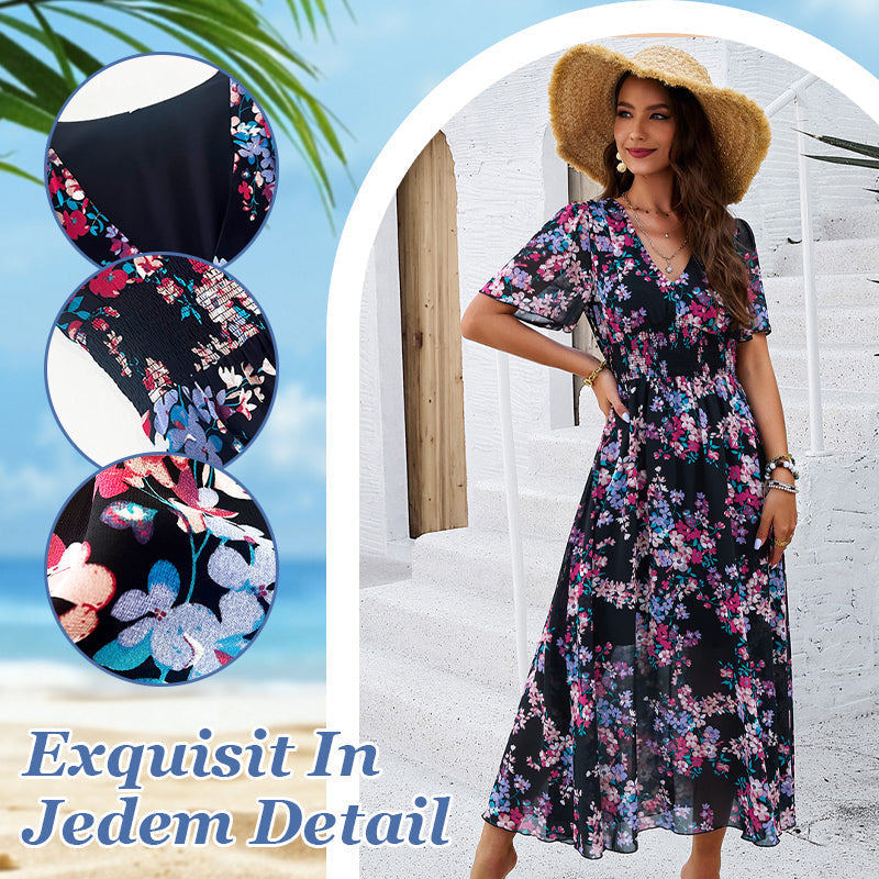 Package Includes: 1 × Women's Elegant Printed Flowing Dress with V-Neck