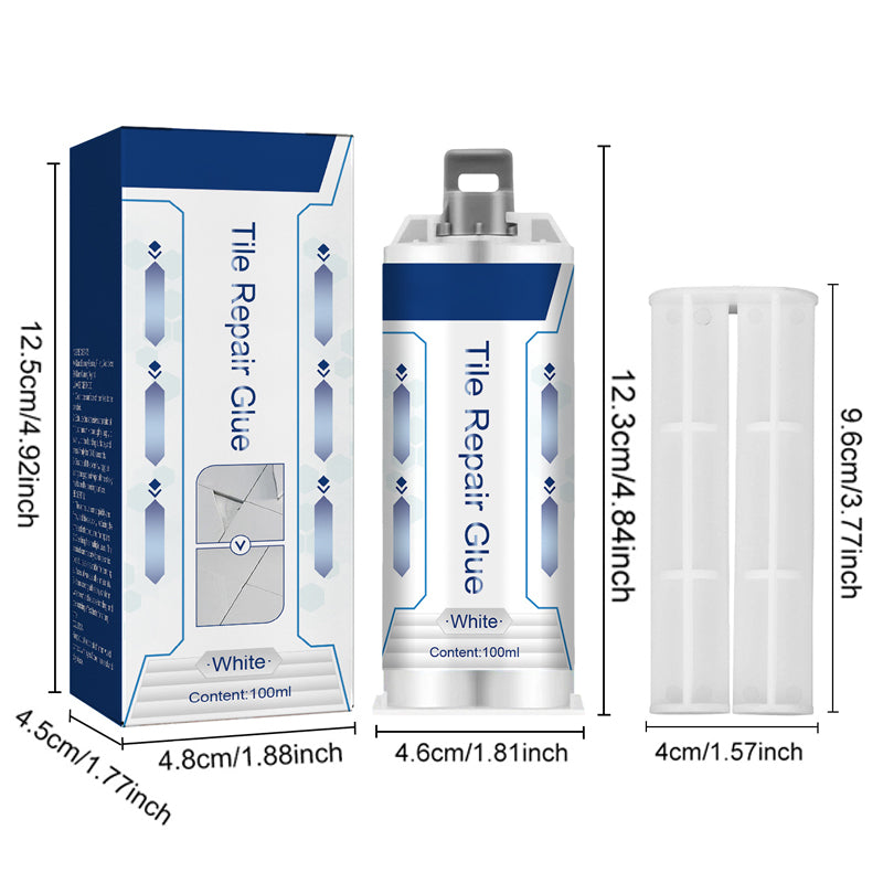 HOW TO USE - Clean the damaged ceramic tile surface, squeeze out adhesive in a 1:1 ratio and mix thoroughly before use. Once completely cured, sandpaper can be used to smooth the surface.