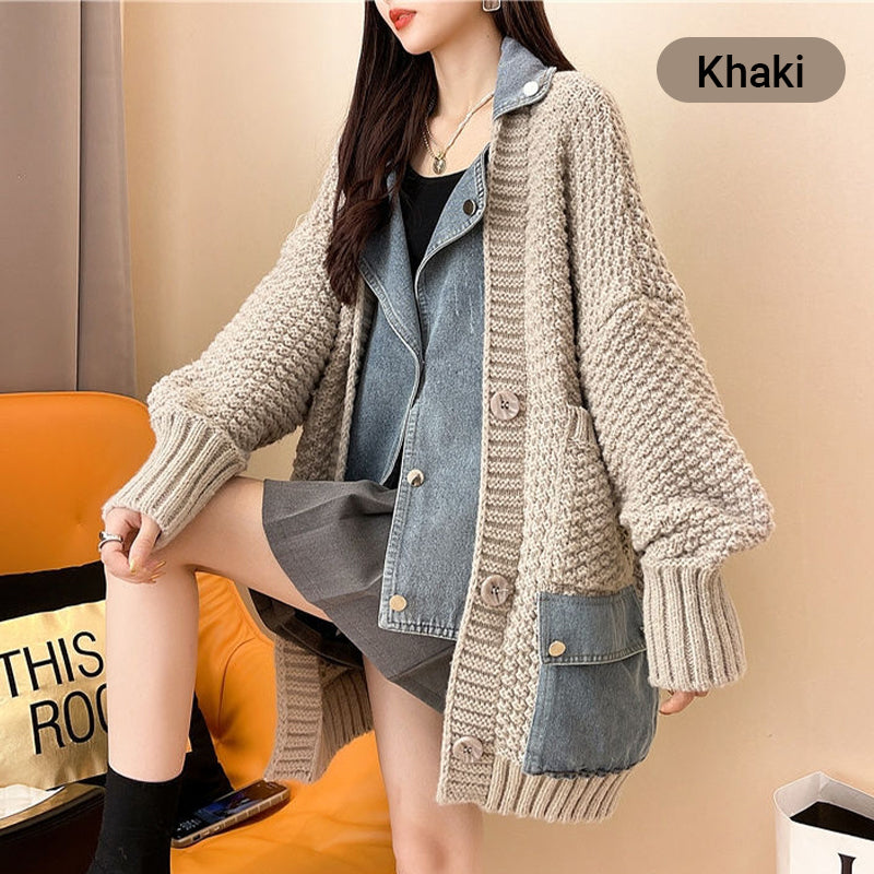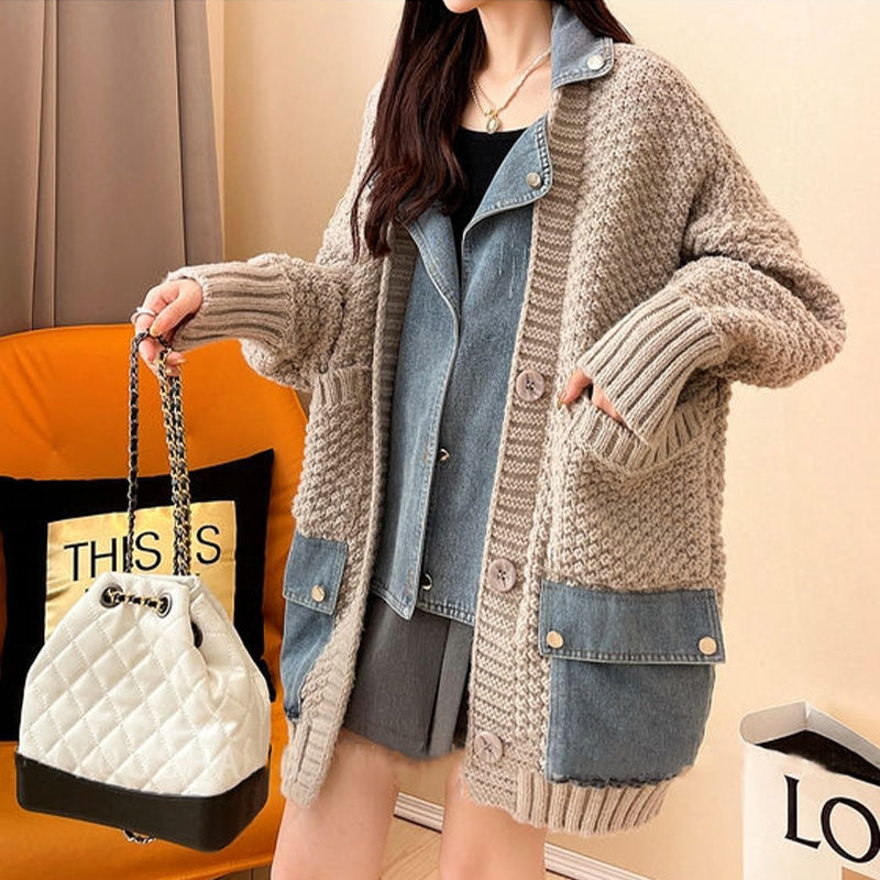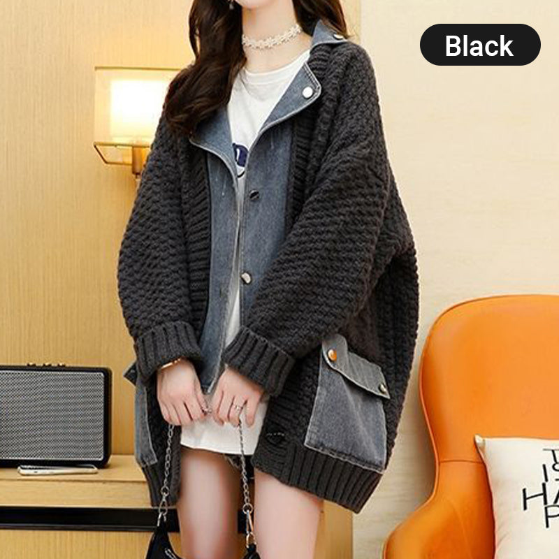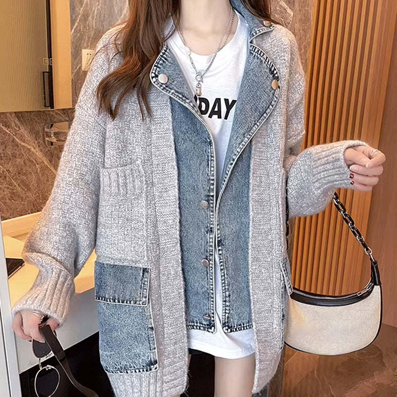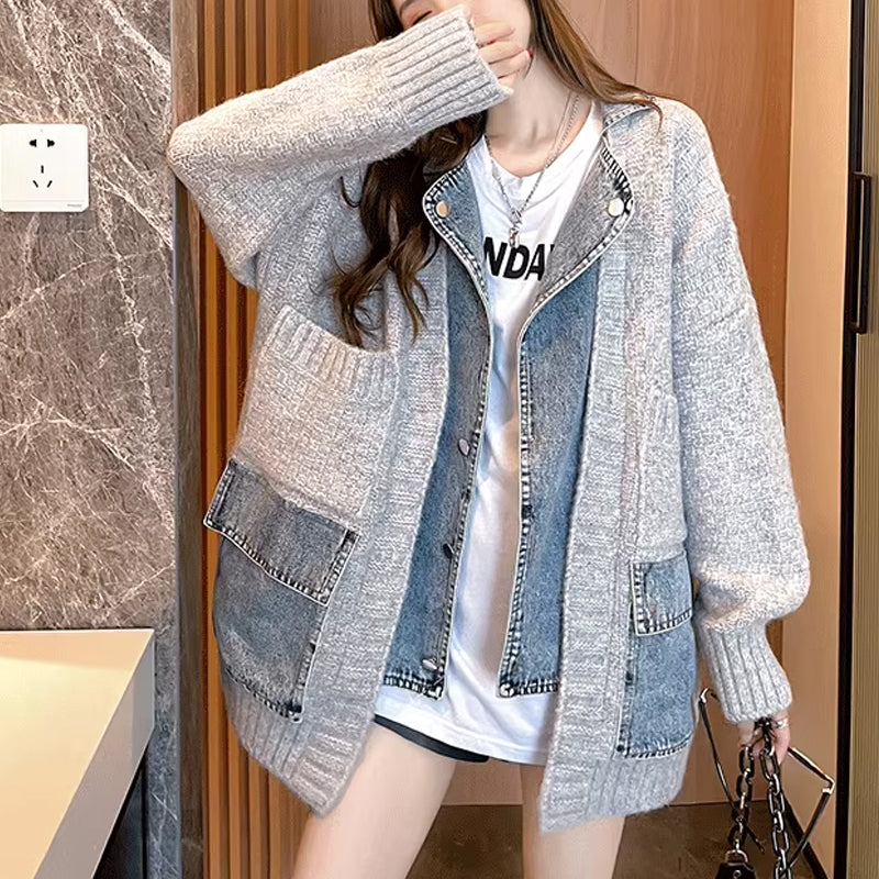 Fashionable and Comfortable Women's Knit Denim Patchwork Jacket