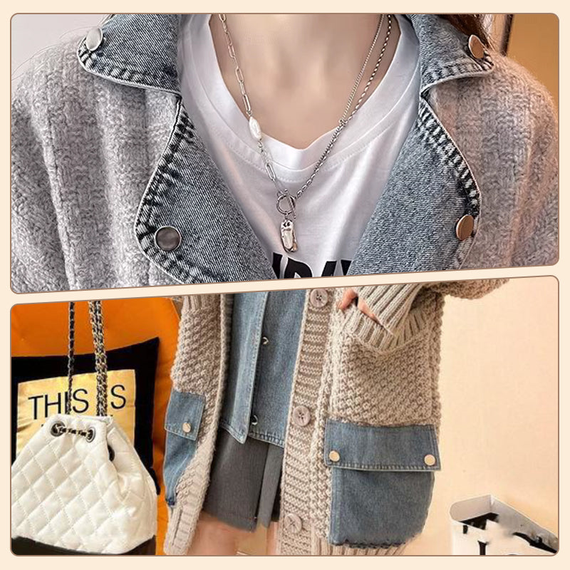 Package Includes: 1* Fashionable and Comfortable Women's Knit Denim Patchwork Jacket