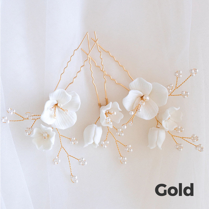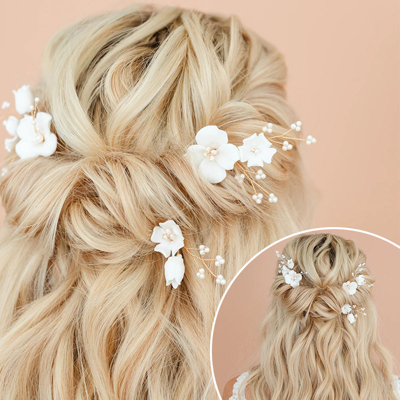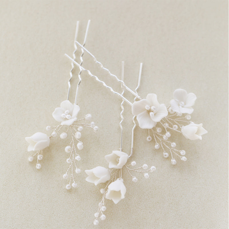 ELEGANT FLORAL DESIGN - The Floral Hair Pins feature a collection of romantic ivory ceramic flowers, adorned with faux freshwater pearls and ivory beads. This delicate floral design adds a touch of elegance and femininity to any hairstyle.