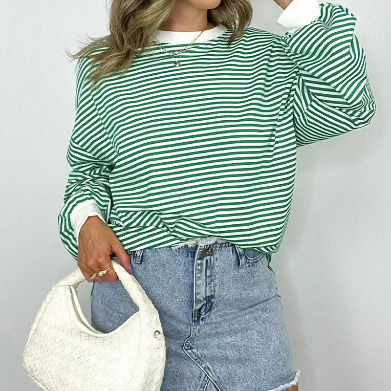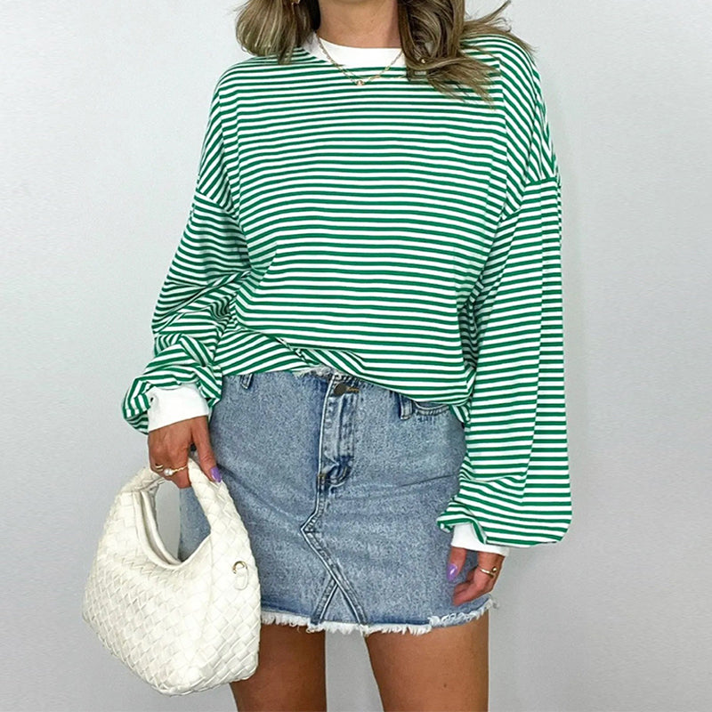 Women's Oversized Striped Crewneck Pullover