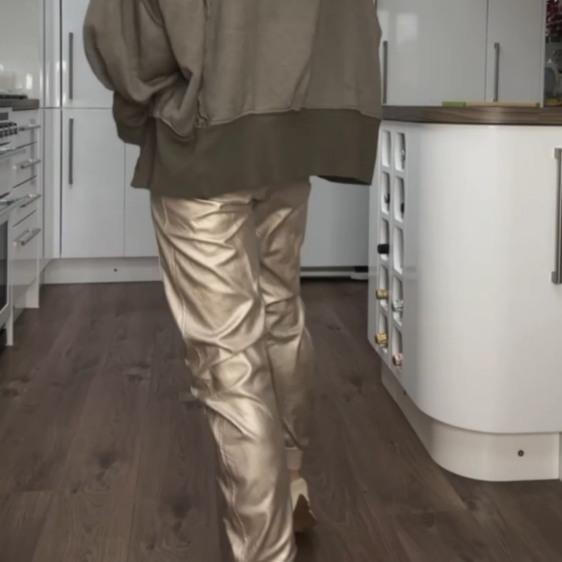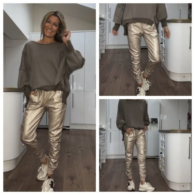 Gold Faux Leather Joggers with Pockets