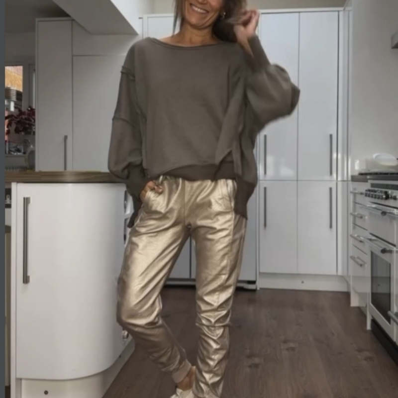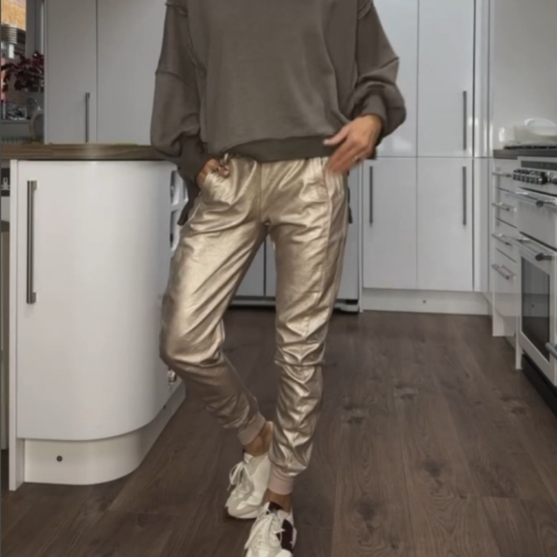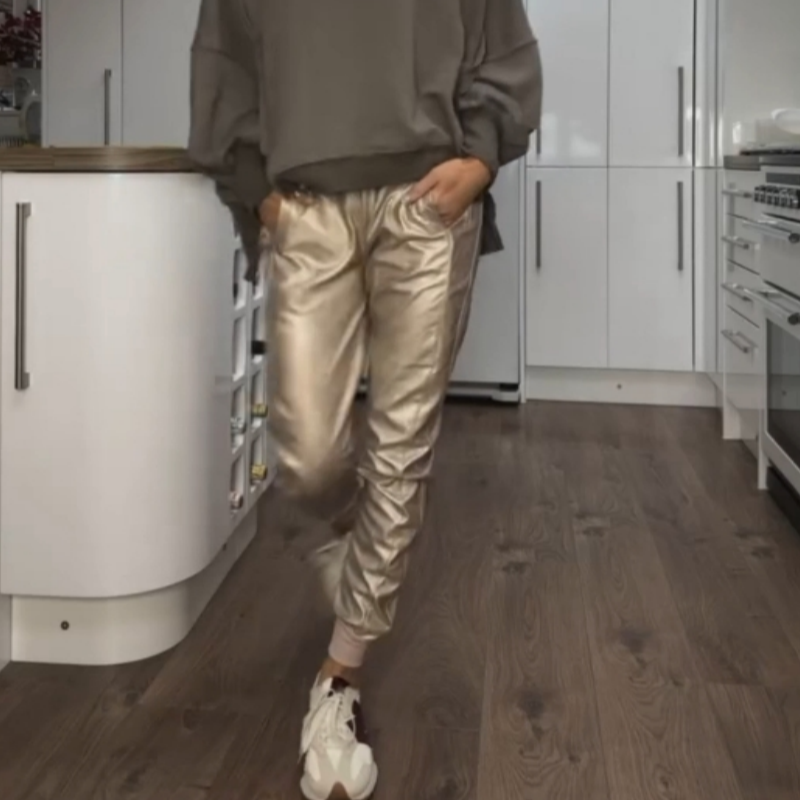 STYLISH GOLDEN LOOK - With a bold metallic sheen, these gold jogging pants add a luxurious touch to any outfit, perfect for making a statement whether you're going to a party or out for a casual day.