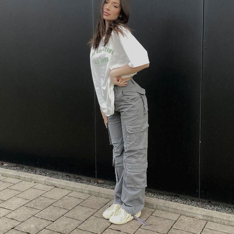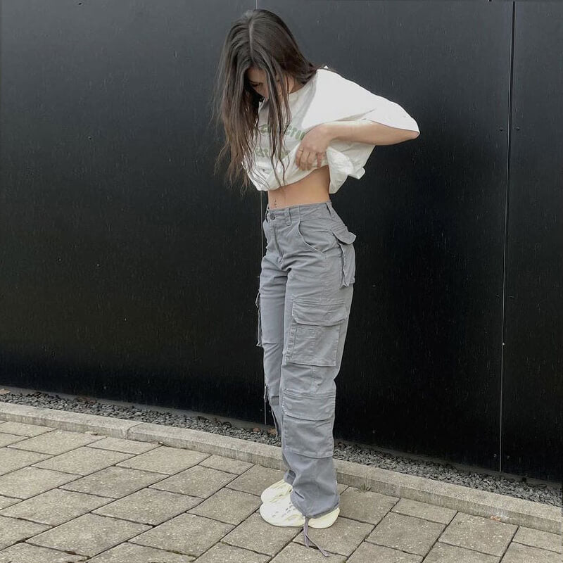 Grey cargo pants for women