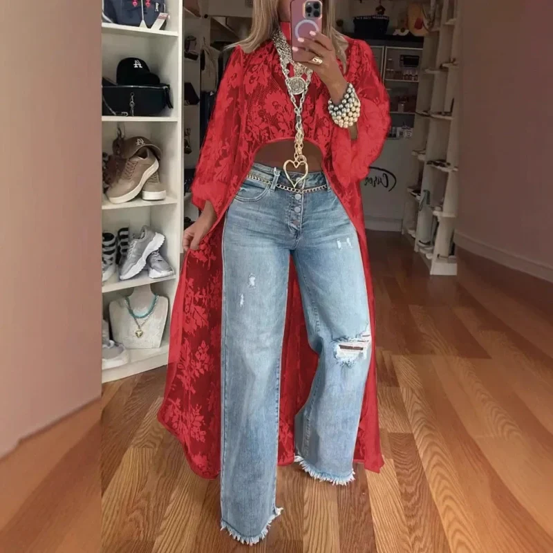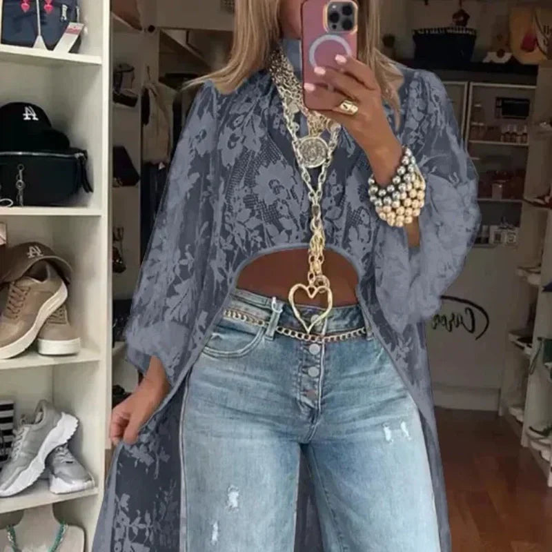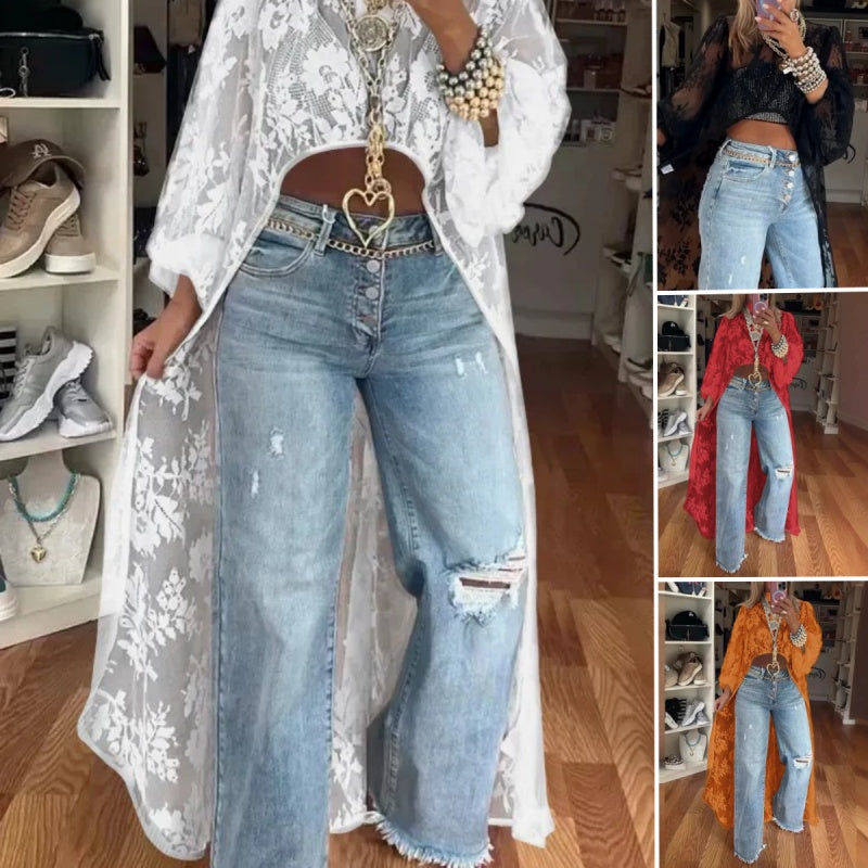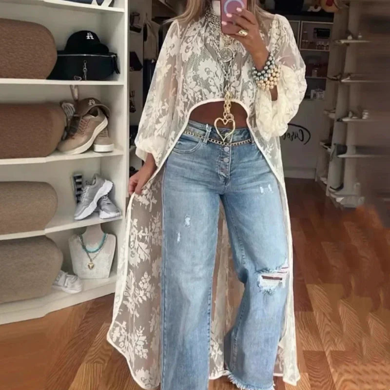 Lace Pattern See-Through Elegant Maxi Top