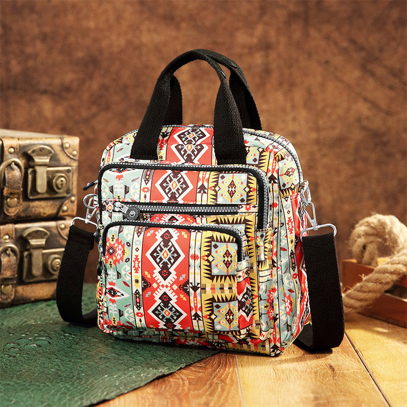 LARGE CAPACITY DESIGN: This Aztec Bohemian backpack offers ample space to accommodate all your daily necessities, including a phone, wallet, makeup, books, and an umbrella. Whether you're commuting, traveling, or shopping, its generous capacity ensures you can carry everything you need.