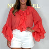 FEMININE RUFFLE DETAILS - The ruffle accents add a feminine touch, elevating the overall style of the blouse. Enjoy a flattering design that enhances your silhouette and complements your personal style.