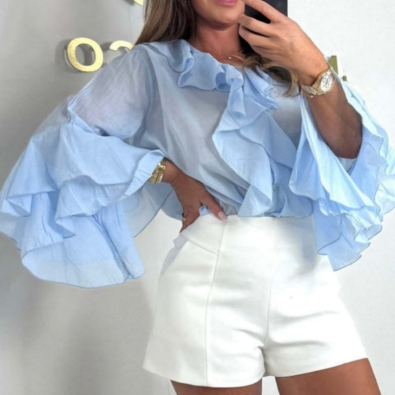 🎁 Discount just reduced🎁Women’s Elegant Button Front Loose Fit Ruffle Blouse