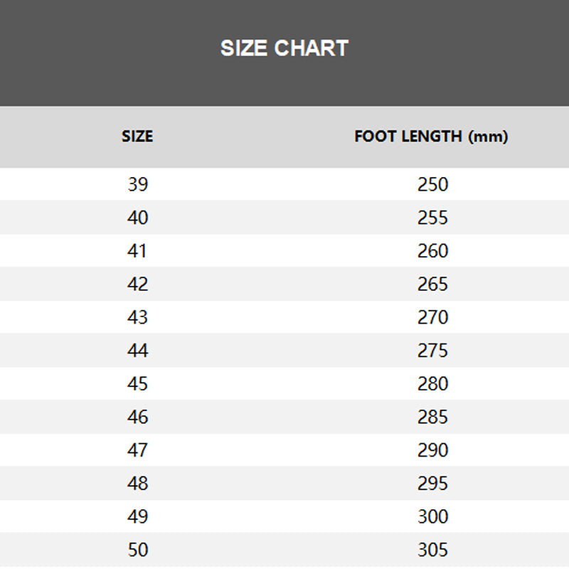 Size: 39, 40, 41, 42, 43, 44, 45, 46, 47, 48, 49, 50