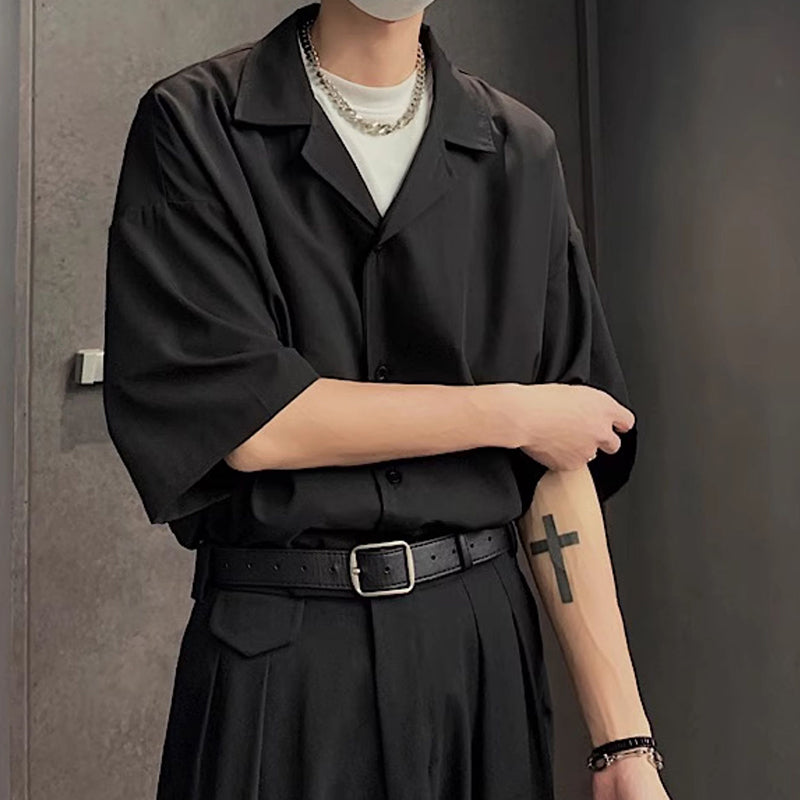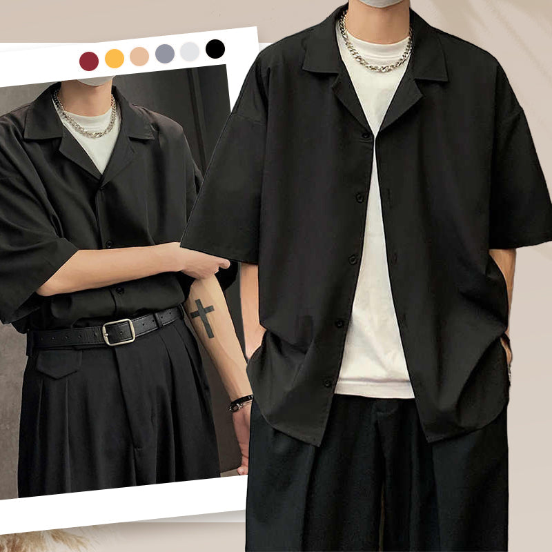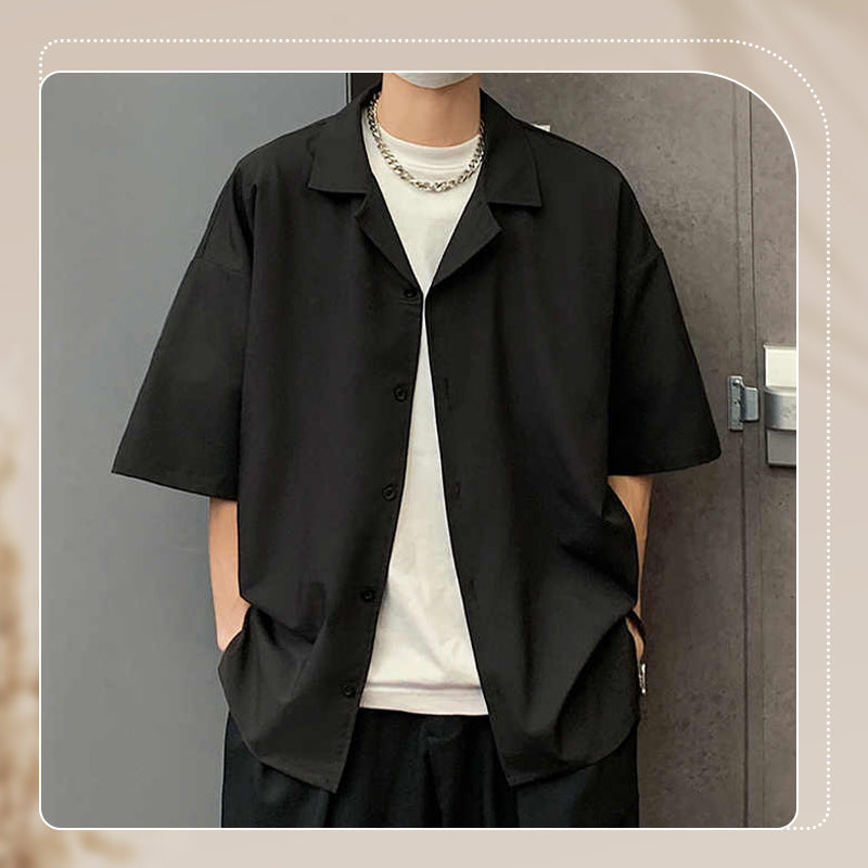 Package Included: 1*Men's Solid Color Loose Lapel Shirt