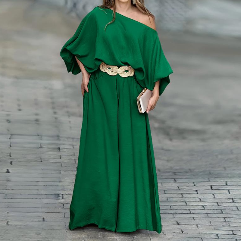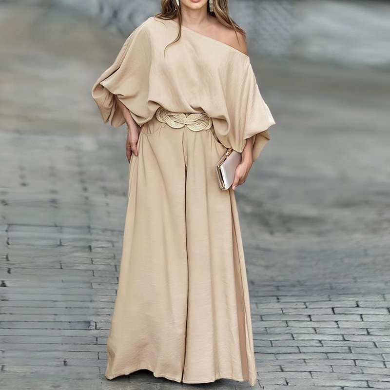 Package Includes: 1×One-Shoulder Top & Wide-Leg Pants Set
