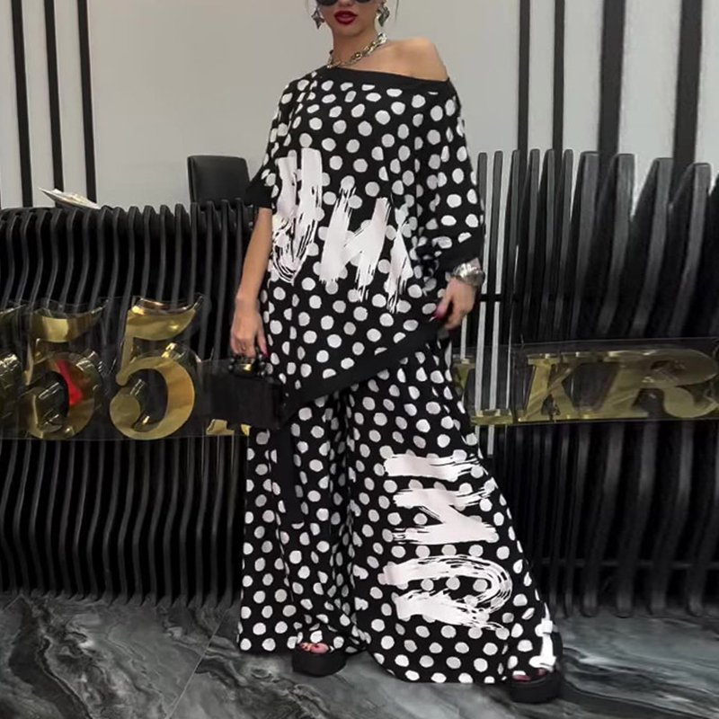 Package Includes: 1*Women’s Fashion Oversize Top & Wide-Leg Pants 2 PCS Set