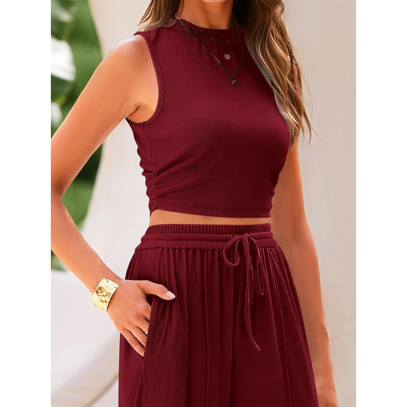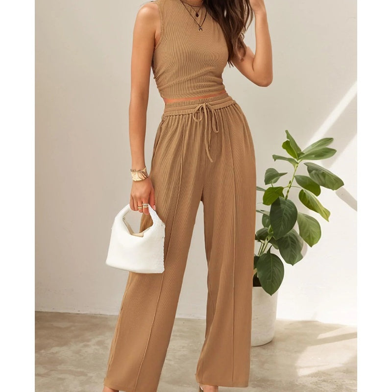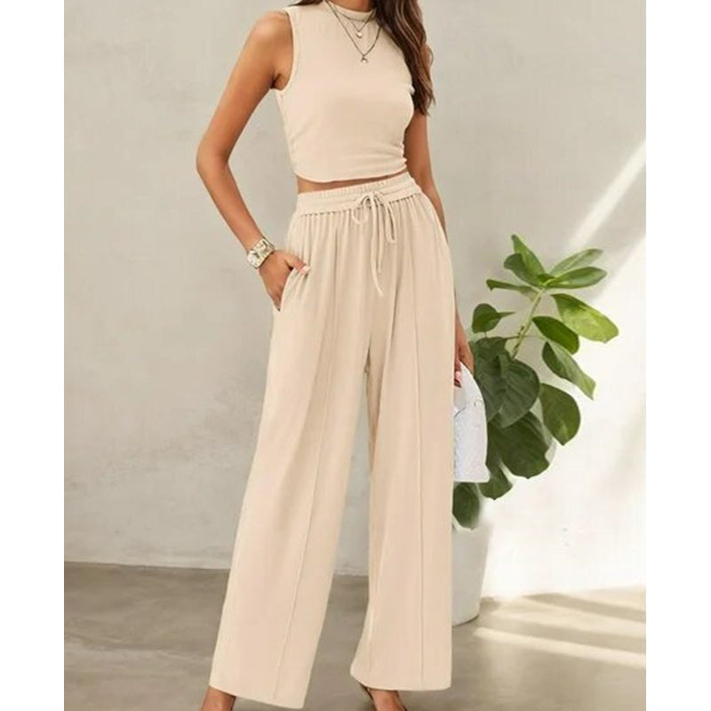 🌸New Arrival 50%OFF💖 Women's Summer Solid Short Crop Tank Top & Drawstring Wide Leg Pants 2-Piece Set
