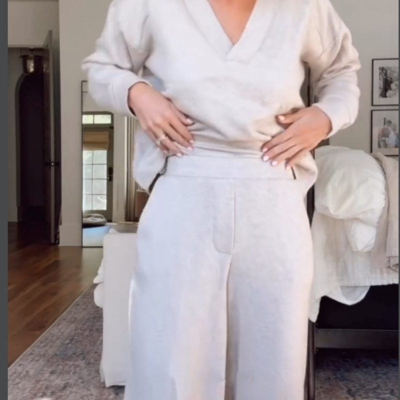 Package Includes: 1 *Casual Suit V-Neck Top & Wide Leg Pants