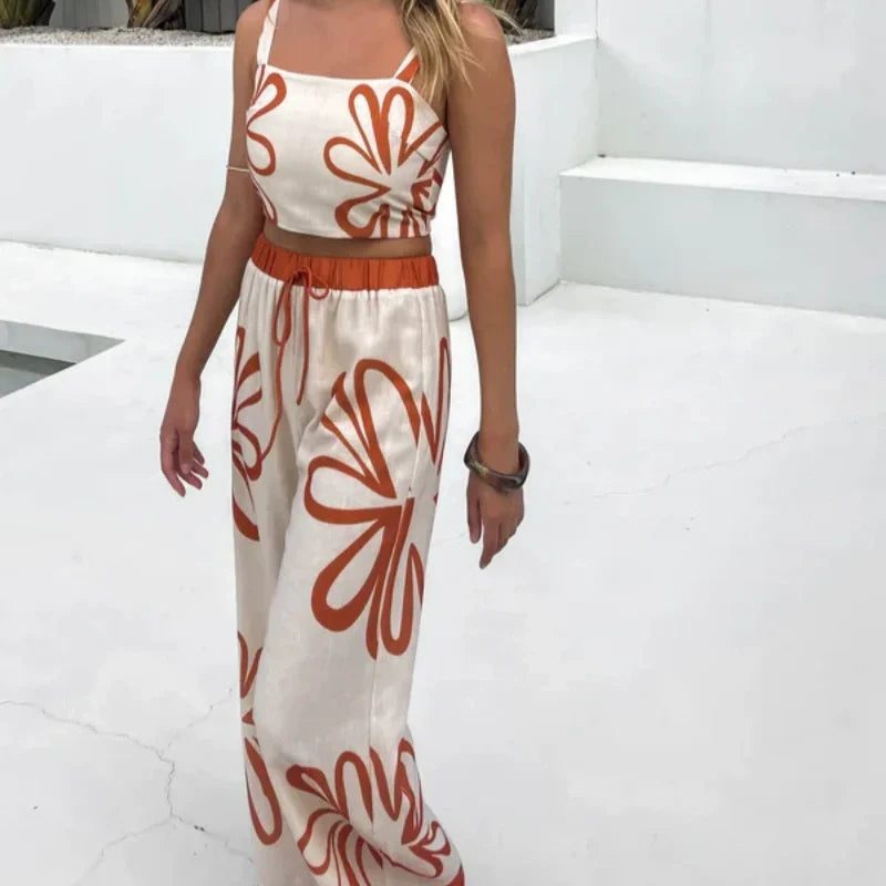 Package Includes:1*Printed Sleeveless Top & Wide-Leg Pants Set