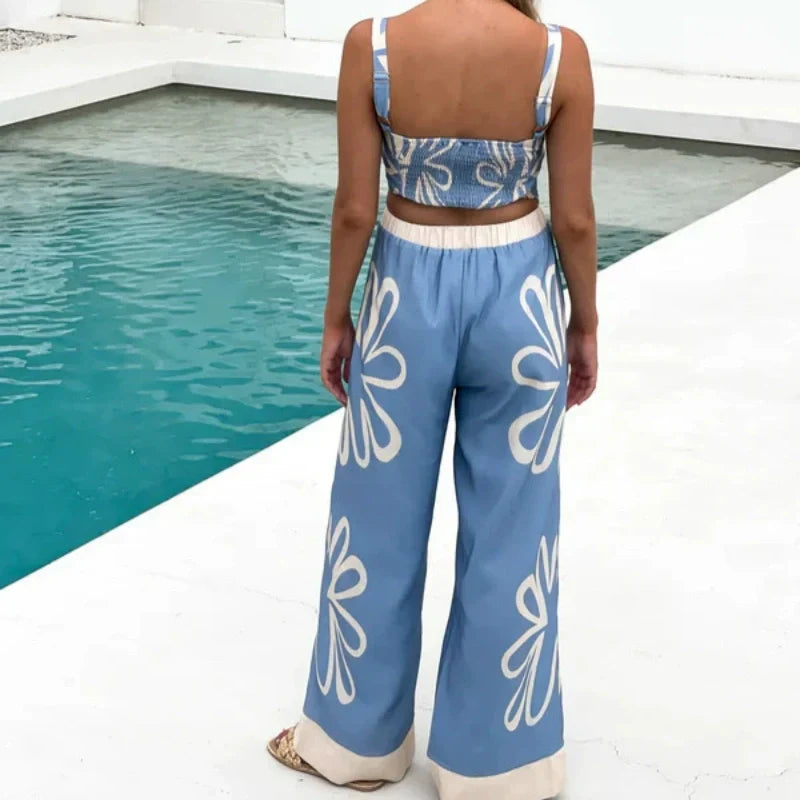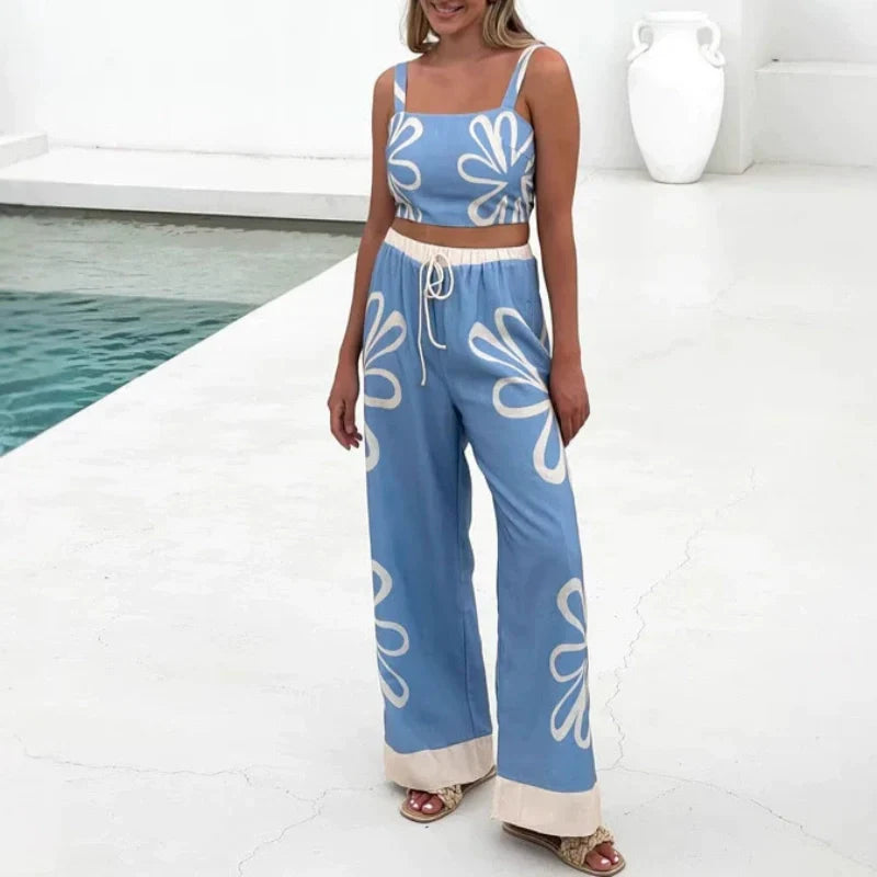 Printed Sleeveless Top & Wide-Leg Pants Set