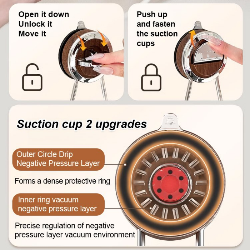 UPGRADED DUAL NEGATIVE PRESSURE TECHNOLOGY: The advanced suction cup uses dual negative pressure to ensure a strong, stable hold without the need for drilling, providing a reliable and secure storage solution.